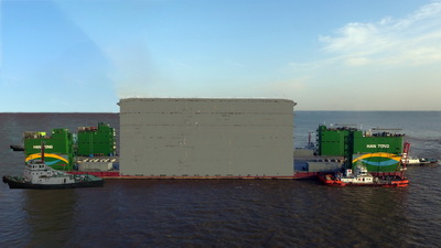 2016年11月30日,韓通、海洋再次聯合中標溫州甌江口大橋鋼沉箱項目。兩司聯合進入海上風電領域后,再次進入中鐵鋼構工程。此項目為溫州甌江北口大橋主橋中塔基礎鋼沉井,長66*寬55*高59米,自重1.8萬噸,工期180天,集團利用自身資源完成制作、合攏、海上浮運到現場錨固等項目工程。