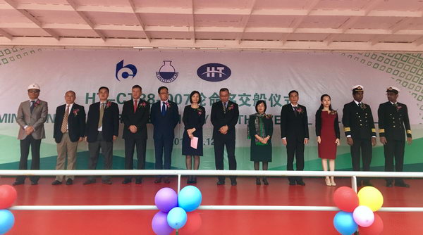 38000噸不銹鋼化學(xué)品船(HT-CT38-007)順利舉行命名&交船儀式