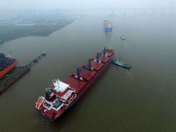 2018年4月6日,我司為美國Vulica船東建造的68000噸自卸船(船體號:HT68-219)和為PD船東建造的38800噸散貨輪(船體號:HT388-211)同日離開碼頭出發試航。兩船均入級LR船級社。預祝試航圓滿成功。