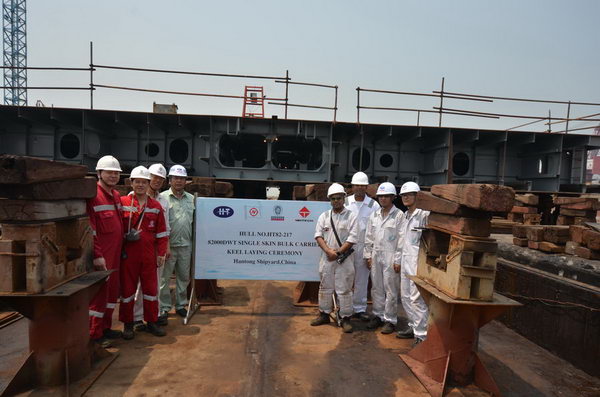 我司為日本日新船東建造的82000噸散貨輪(船體號:HT82-217)于2018年6月12日在我司舉行了上臺儀式,該船入BV船級社。公司領(lǐng)導(dǎo)、船東代表及船級社代表參加該儀式。