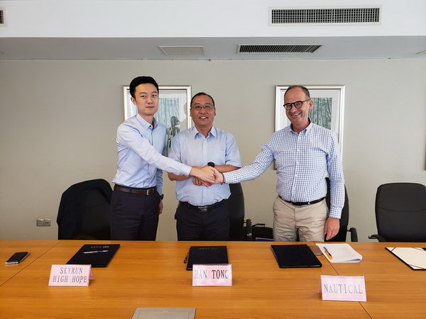 2018年7月25日,我司為德國公司建造的74000噸油輪(船體號:HT-OT74-007)順利簽字交船,該船入LR船級社。公司領導、船東、貿易商代表參加該儀式。