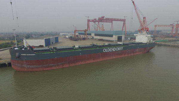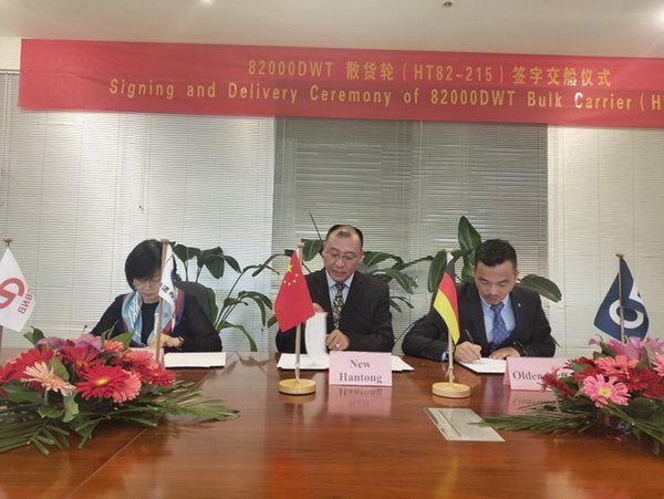 2019年10月25日,新韓通船舶重工為德國船東Oldendorff建造的82K散貨輪 “Kendra Oldendorff”(船體號:HT82-215)成功簽字交船。