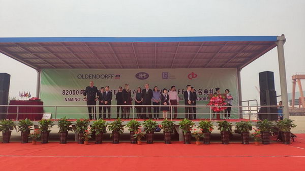 公司領導、船東、船檢及貿易公司代表參加上述儀式。