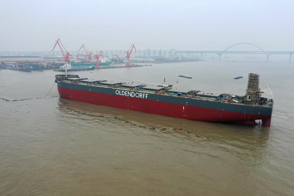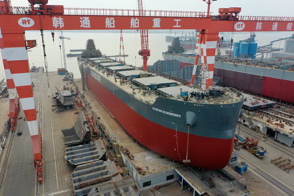 2019年11月13日下午3點35分,我司為德國Oldendorff公司建造的82K散貨輪(船體號:HT82-216)成功下水。船東、船檢及公司領導參加了下水儀式。