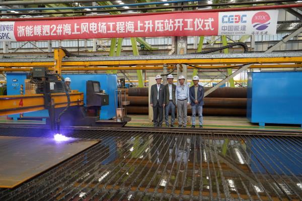 浙能國電投嵊泗2#海上升壓站開工儀式在業主單位和各參建單位代表共同聯手按下點火按鈕并成功開始切割后圓滿結束。