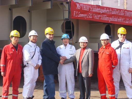 12月16日,在韓通船舶重工的船臺舉行了57000DWT散貨輪(HT016)上臺儀式,該船為德國Peter Dohle公司建造,入LR級,是該船東系列船的第一艘,將在2009年3月下水,5月底交船,江蘇弘業公司提供保涵.