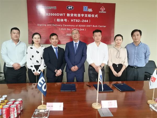 2020年9月21日,我司為德國船東Oldendorff建造的系列船中最后一條82K散貨輪 “KIRA OLDENDORFF”(船體號:HT82-244)成功簽字交船。