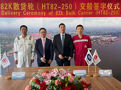 2023年6月2日,韓通為日本Nisshin船東建造的新批次第六艘82000噸散貨輪 “TRUSTN TRADER”(船體號:HT82-250)成功簽字交船。