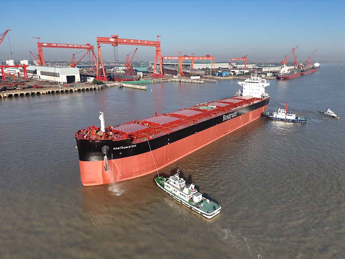 2023年11月29日,韓通為德國H. Vogemann船東建造的第三艘82000噸散貨輪 “ROSTRUM STOIC”(船體號:HT82-269)順利簽字交付。