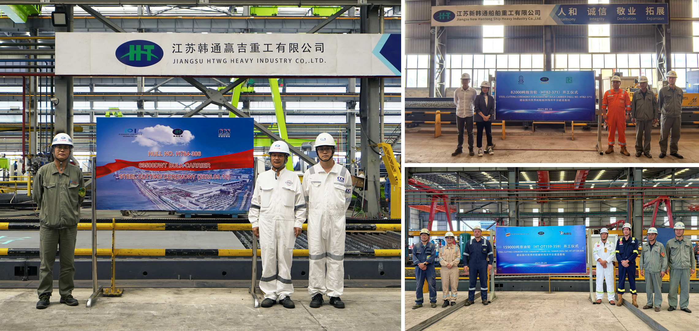 PIONEER建造的63500噸散貨船項(xiàng)目(HT64-386)、TMS建造的159000噸油輪項(xiàng)目(HT-OT159-359)、NNC建造的82000噸散貨船項(xiàng)目(HT82-371)開工。