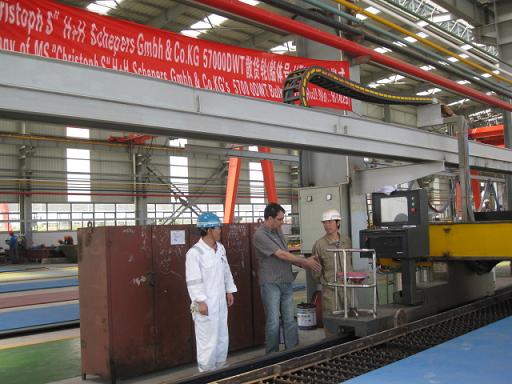 5月13日上午10點惠風(fēng)和煦、艷陽高照,我公司為Peter Doele建造的57000噸散貨輪(HT025)在韓通重工二期切割中心舉行了開工儀式。韓通重工李繼念副總經(jīng)理、德國船東代表等人參加了儀式。該散貨輪代理公司為江蘇弘業(yè)股份有限公司,入英國勞式船級社。最后儀式在聲聲炮竹聲中圓滿結(jié)束。