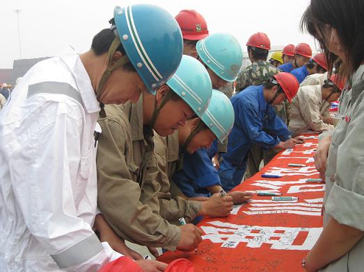 在活動的現場,韓通以及外包單位數萬名員工,在仔細觀看安全事故教育圖片展后,紛紛在橫幅上鄭重地簽下了自己的名字,均表示要努力學習安全知識與技能,將安全落實到工作生活中的每一個細節,真正做到“時時講安全,處處想安全,事事先安全,人人能安全”,對家庭負責,對社會盡責。
