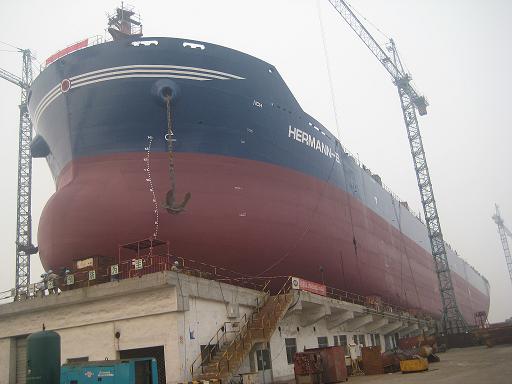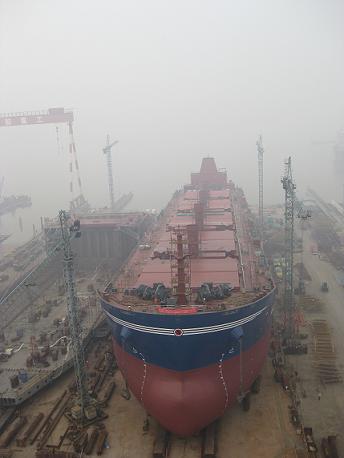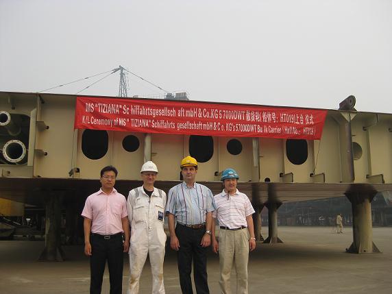 2009年6月13日清晨7:00,PD項目的第二艘57000噸散貨輪(船體號:HT017)在韓通重工的1號船臺,1號滑道迎著朝陽順利下水。該散貨輪代理公司為江蘇弘業股份有限公司,入LR船級社。韓通重工領導、船東代表、代理公司代表和LR代表共同迎接了這一激動人心的時刻。隨后在同一船臺PD項目的又一艘57000噸散貨輪(船體號:HT019)舉行了上臺儀式。