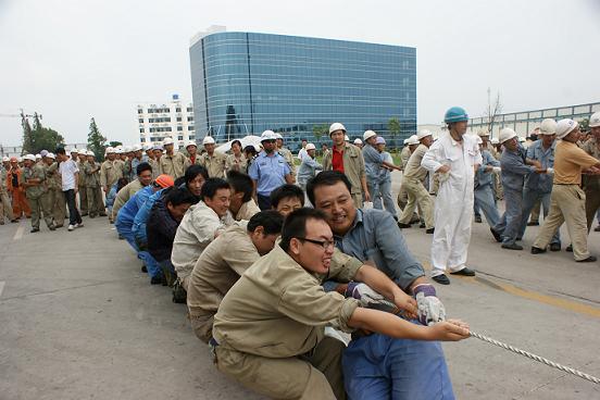 2009年7月17日下午16:00,韓通船舶重工首屆“人和杯”拔河比賽在公司24米主干道上隆重舉行。首先,武亦文總經理進行了開幕致詞,充分肯定了這次活動的意義,并對參賽人員進行了鼓勵;陳林軍副總經理宣講了比賽規則以及比賽陣容。隨后,比賽正式開始。