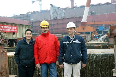 次日上午9:30,我司為德國船東建造又一艘57000噸散貨輪(HT022)在同一個船臺舉行了上臺儀式,入LR級,代理公司為中航技。