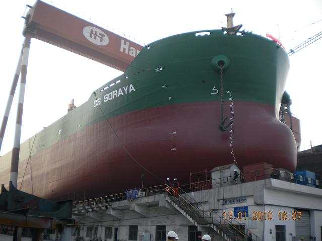 我司為巴哈馬船東Soraya Shipping Company Limited建造的57000噸散貨輪(船體號HT064)于2010年1月17日下午4:50在我司1號船臺順利下水,該船是我為巴哈馬船東建造的第一艘57000噸散貨輪,其建造十分順利,僅用了70天的船臺周期。武亦文總經理,格雷格駐廠項目經理Martin Adams,英勞駐廠代表參加了該儀式。