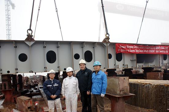 我司為巴哈馬船東Sonoma Shipping Company Limited建造的57000噸散貨輪(船體號(hào)HT065)于2010年1月31日上午10:00在2號(hào)船臺(tái)舉行上臺(tái)儀式,該船入英國勞氏船級(jí)社。韓通重工李繼念副總,格雷格駐廠項(xiàng)目經(jīng)理Martin Adams,英勞駐廠代表駱貴赟參加了該儀式。