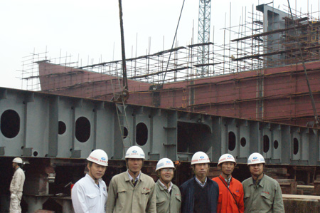 同日,我司為大新船東建造的57000噸散貨輪(船體號HT048)于上午10:30在1#船臺1#滑道成功上臺,船東駐廠經理柳桐及駐廠代表,韓通重工李繼念副總等參加了該儀式。