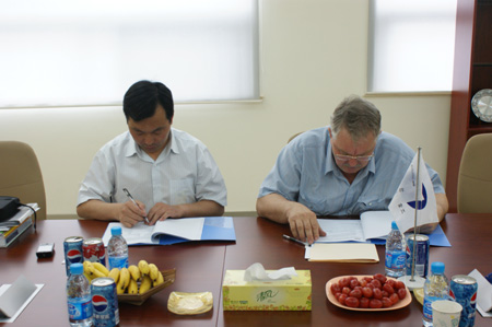 我司為巴哈馬船東Soraya Shipping Company Limited建造的57000噸散貨輪(船體號(hào)HT064)于2010年5月8日早上11:00在2號(hào)會(huì)議室簽署交船文件,該船入英國(guó)勞氏船級(jí)社。