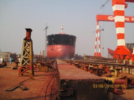 我司為寶源船東建造的57000噸散貨輪(船體號HT067)于2010年8月3日早上7:45在我司2號船臺舉行下水儀式,該船入BV,計劃于2010年9月30日交船。 武亦文總經理及船東代表參加了該儀式。
