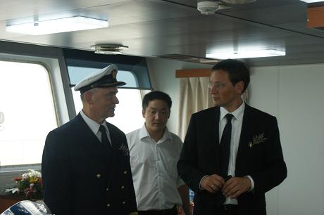 2010年8月17日,韓通船舶重工有限公司為PD公司建造的第十艘57000噸散貨輪(HT033)目前達(dá)到了交船狀態(tài),在韓通重工碼頭為該船舉行隆重的命名儀式。Peter Doehle公司Babic先生,HAMMONIA公司 Kasten Liebing先生,Kay Thuernagel先生,圣母Daisy Ye女士,,英國(guó)勞氏船級(jí)社中國(guó)中部地區(qū)商務(wù)經(jīng)理林立先生、江蘇韓通船舶重工有限公司常務(wù)副總陳林軍先生共同見(jiàn)證了這一激動(dòng)人心的時(shí)刻,并發(fā)表了精彩的演講。各位貴賓在陳興副總的陪同下登船參觀了這艘散貨輪,并在船上合影留念。