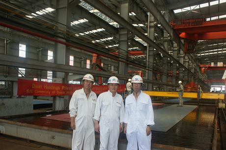 2010年8月23日上午9:30,我司為DA SIN建造的57000噸散貨輪(船體號:HT069)在我司新船體車間舉行開工儀式,該船入BV船級社。陳林軍常務副總、船東代表參加了該儀式。