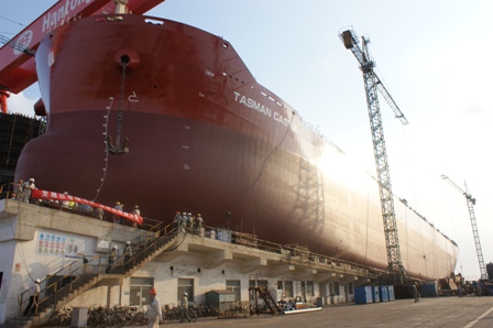 我司為德國船東建造的57000噸散貨輪(船體號:HT024)于2010年11月22日下午15:30在我司1號船臺舉行下水儀式,該船入LR,計劃于2011年初交船。陳林軍常務副總及船東船檢代表參加了該儀式。