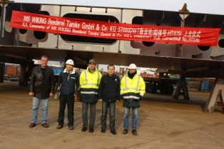 我司為德國建造的57000噸散貨輪(船體號:HT079)于2010年12月16日下午14:30在我司1號船臺舉行了上臺儀式,該船入GL船級社,計劃2011年9月30日交船。陳林軍常務(wù)副總及船東船檢代表參加了該儀式。