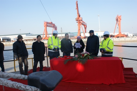2011年1月25日下午,我司為PeterDoehle建造的57000噸散貨輪(船體號:HT024)在文景國際大酒店會議室舉行了命名及交船儀式。該船被命名為"TASMAN CASTLE",入LR船級社。常務副總陳林軍,船東代表Babic,中航技的代表洪昊舟參加了該儀式。2011年1月26日,三方共同簽署了交船協議。至此,該船成功交付。