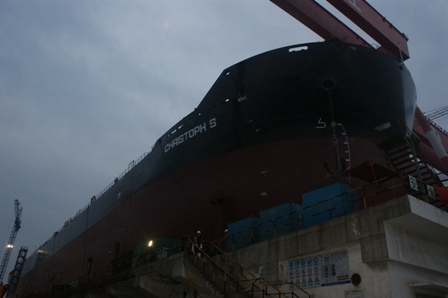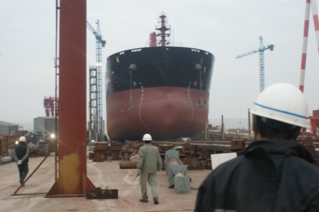2011年4月21日早上5:40,我司為Peter Dolhe 建造的57000DWT散貨輪(HT025)在韓通2號船臺成功下水,該船入LR船級社。陳林軍常務副總,李繼念副總,李泰然總助,船東代表及船級社代表參加該儀式。