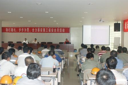 2011年6月4日下午,在公司月度大會之際,韓通重工第三屆“安全月”活動動員大會在行政樓六樓會議室召開。公司主管以上人員、施工隊駐韓通負責人及現場管理人員參加了這次動員大會。會上成立了“安全月”活動小組,由陳林軍常務副總擔任此次活動的組長,負責活動的推行、指導和監督;安環部部長曾憲章擔任副組長,負責“安全月”活動的整體策劃、組織、實施和跟進。動員會上,安環部曾部長對第三屆“安全月”活動策劃書及活動方案進行講解,讓大家了解到此次活動的目標及內容。還對即將在第三屆“安全月”活動中開始推行的“1+3”安全監控體系進行解讀,讓大家知道什么是“1+3”體系,為什么要推行“1+3”體系,及在推行“1+3”體系的時候我們要做些什么。貫述了“安全責任,重在落實”的安全月主題精神,體現了“人人懂安全,人人會安全,人人能安全”氛圍。讓大家都參與到我們的“安全月”活動中來,穩打穩扎,步步為營,全面落實第三屆“安全月”活動!