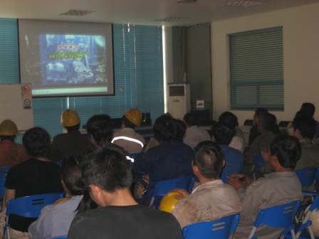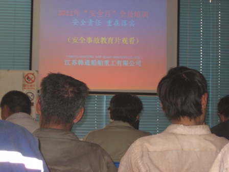 根據第三屆“安全月”活動計劃,2011年6月7日下午5:30,首次全員培訓在公司安全培訓室開課。蘇通隊和堅強隊及滬南隊的部分員工參加了這次培訓,他們積極參與的熱情就像這火熱的天氣一樣。課上,我們播放了船舶作業安全事故VCD《血的教訓Ⅱ》(此片收集了近幾年周邊船舶修造行業真實發生的典型事故案例)。雖然工人們已經不是第一次觀看,但一幕幕血淋淋的場景,一樁樁慘痛的事故,一個個令人深思的教訓,都能再次繃緊工人們安全上的這根弦,再次喚醒工人們的安全意識。課上,我們還播放了《火災燃爆警示篇》、《我選擇了視而不見》等安全視頻。根據活動計劃,從6月7日—6月26日每天下午下班后,我們的全員培訓課程將每天進行,希望韓通重工的每一名員工都參與到我們的活動中來!“前車之覆,后車之鑒”,愚者用鮮血換取教訓,智者用教訓避免流血。愿那些用鮮血和生命換來的教訓使我們引以為戒,重視安全,珍惜生命。“生命易逝,生命是金。”