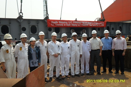 我司為Eagle Bulk 建造的57000噸散貨輪(船體號(hào):HT090)于2011年6月9日下午14:00在我司3號(hào)船臺(tái)舉行了上臺(tái)儀式,該船入LR船級(jí)社。陳興副總及船東船檢代表參加了該儀式。