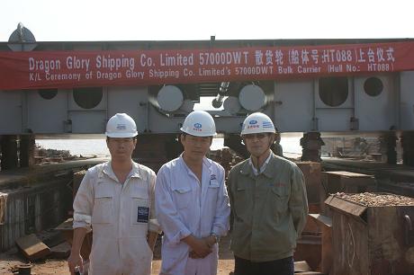 我司為大新船東建造的57000DWT散貨輪(船體號:HT088)于2011年10月15日下午2:00在我司舉行了上臺儀式,該船入LR船級社。潘學軍副總及船東船檢代表參加了該儀式。