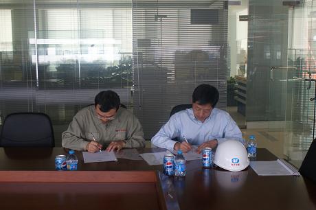 2011年10月17日上午10:00,我司為大新船東建造的57000噸散貨輪(船體號:HT089)開工儀式在韓通新船體車間順利舉行,該船入LR船級社。李繼念副總及船東、船級社代表參加了該儀式。開工點火后,三方在韓通會議室簽署了開工文件。