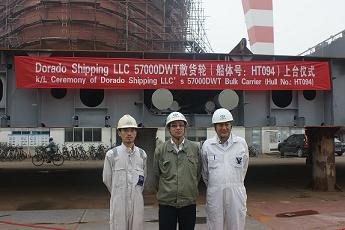 我司為Eagle Bulk船東建造的57000噸散貨輪(船體號:HT094)于2011年11月5日在我司舉行了上臺(tái)儀式,該船入LR船級社。潘學(xué)軍副總及船東船檢代表參加了該儀式。