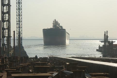 2011年11月24日,我司為Eagle Bulk船東建造的57000噸散貨輪(HT091)在韓通2號船臺成功下水,該船入LR船級社。陳林軍常務副總,船東代表及船級社代表參加該儀式。