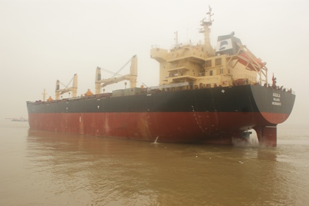 上海船舶研究院的船舶設計專家稱:”這種新型的57K散貨船已根據最新的散貨船共同結構規范要求,優化了相關結構設計,尤其是滿足了裝載鋼卷所要求的結構加強。新船型一次航程能夠負載54,000噸的鋼卷,而空船重量沒有多少增加。現在,這條船也已符合EEDI-PHASEI的要求。”