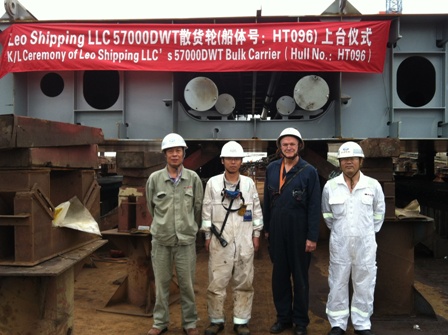 我司為 Eagle 船東建造的57000DWT散貨輪(船體號:HT096)于2012年5月23日我司3號船臺舉行了上臺儀式,該船入LR船級社。鄭錫山副總、李繼念副總及船東船檢代表參加了該儀式。