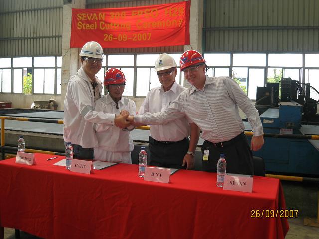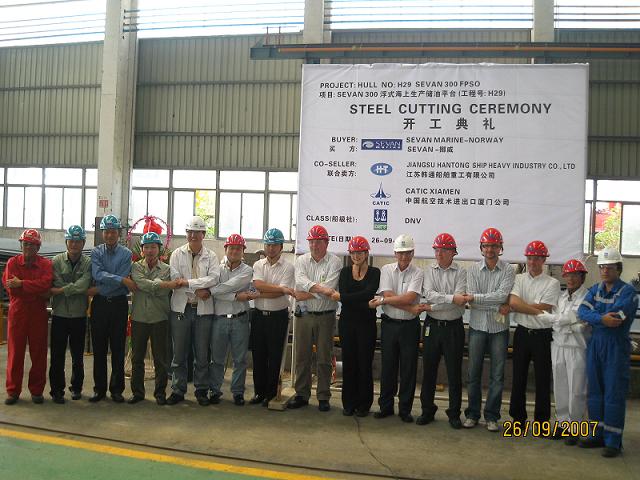 第二艘Sevan300 FPSO(H029)于2007年9月26日在韓通船舶重工順利開工. 來自Sevan Marine, NDV, CATIC, OMO, HT的各方代表參加了點火慶典.