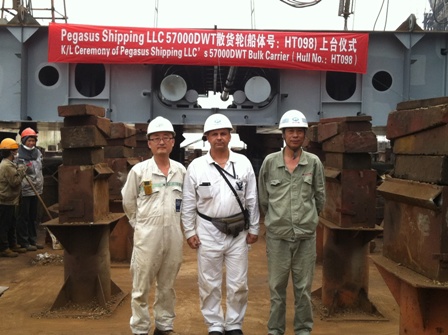我司為Eagle船東建造的57000DWT散貨輪(船體號:HT098)于2012年6月8日在我司1號船臺舉行了上臺儀式,該船入LR船級社。鄭錫山副總經理及船東、船檢參加該儀式。