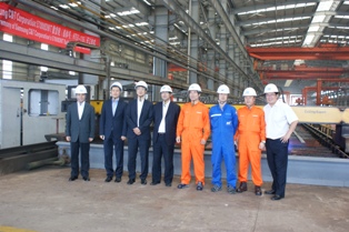 2012年6月19日,我司為三星船東建造的57000噸散貨輪(船體號:HT57-116)開工儀式在韓通新船體車間順利舉行,該船入KR船級社。潘學軍副總經理及船東、船檢代表參加該儀式。