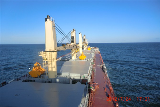 2012年7月30日,我司為春安船東建造的57000噸散貨輪(HT100)經(jīng)過為期一周的試航試驗后,圓滿試航歸來,入NK船級社。此次試航順利完成各項交驗項目,并達到船東、船檢的要求,圓滿完成了該船的試航任務(wù)。