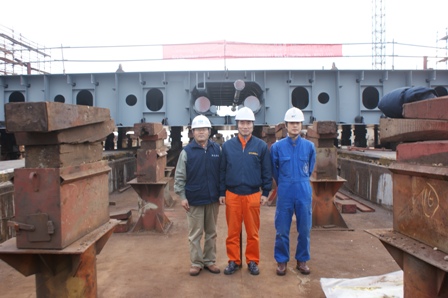 我司為韓國三星船東建造的57000DWT散貨輪(船體號:HT57-117)于2012年12月18日在我司1號船臺舉行了上臺儀式,該船入KR船級社。李繼念副總經理及船東、船檢參加該儀式。