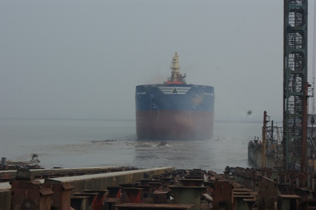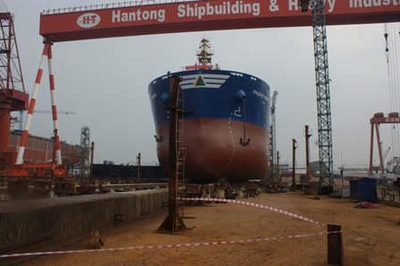 2013年6月10日,我司為韓國三星船東建造的57000DWT散貨輪(HT57-117)在韓通1號船臺順利下水,該船入KR船級社。周義慶副總經理,船東代表及船級社代表參加該儀式。