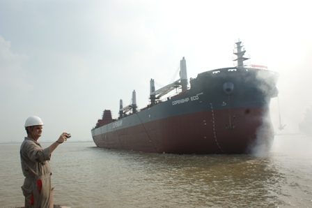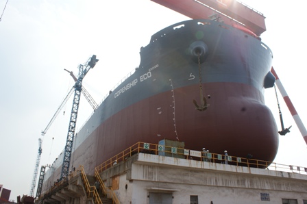 2013年7月8日,我司為希臘船東Loadline建造的64000噸散貨輪(HT64-115)在韓通2號船臺成功下水,該船入NK船級社。于澤彬總經(jīng)理、周義慶副總經(jīng)理、高振成副總經(jīng)理、船東代表及船級社代表參加該儀式。