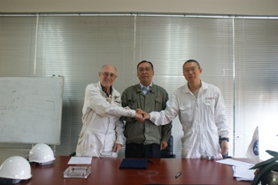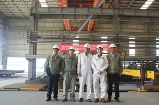 2013年10月28日,我司為日本 NISSHIN 船東建造的64000噸散貨輪(船體號:HT64-128)開工儀式在韓通新船體車間順利舉行,該船入BV船級社。周義慶副總經理及船東、船檢代表參加該儀式。