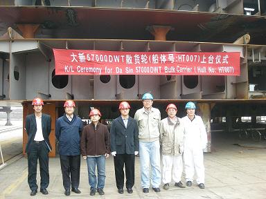 11月26,為新加坡大新船東建造的57000噸散貨輪(HT007)在韓通重工隆重舉行了上臺儀式,此為姐妹船的第二艘,將在2008年8月底交付使用,入BV船級社,貿(mào)易公司為江蘇蘇美達(dá)船舶公司。