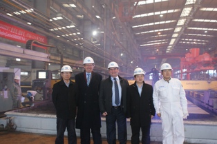 2014年1月22日,我司為英國船東建造的64000噸散貨輪(船體號:HT64-171)開工儀式在韓通新船體車間順利舉行,該船入NK船級社。高振成副總經理及船東、船檢代表參加該儀式。