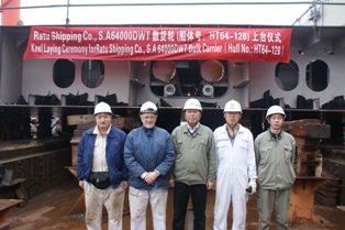 我司為日本日新船東建造的64000DWT散貨輪(船體號:HT64-128)于2014年2月28日在我司1號船臺舉行了上臺儀式,該船入BV船級社。周義慶副總經理及船東、船檢參加該儀式。
